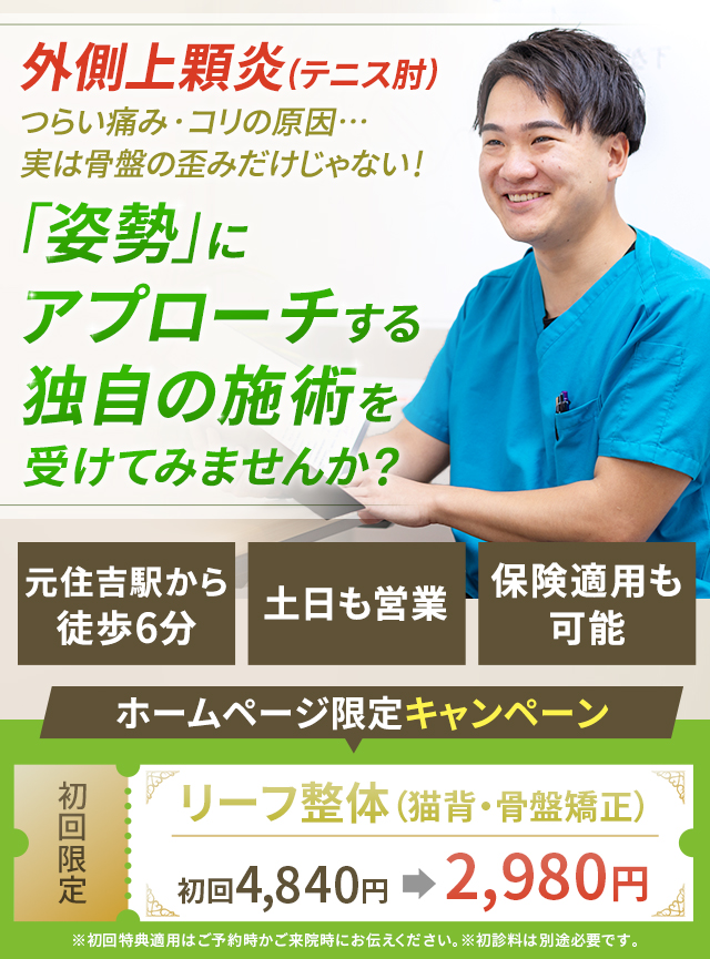 リーフ整骨院 元住吉院のテニス肘に対するアプローチ