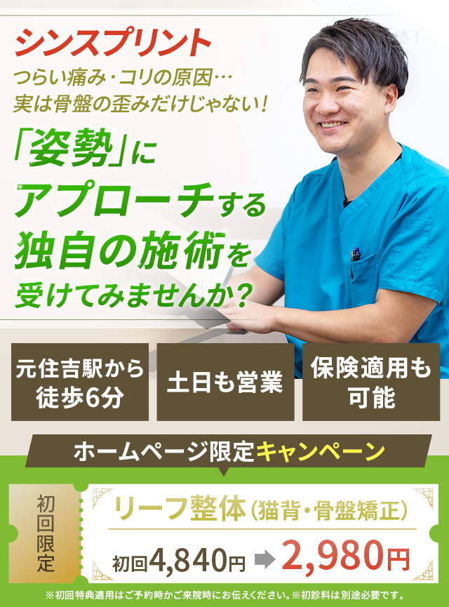 リーフ整骨院 元住吉院では、シンスプリントの改善に対して痛みを早急に取り除き、再発しない体づくりを最も大切にしています。