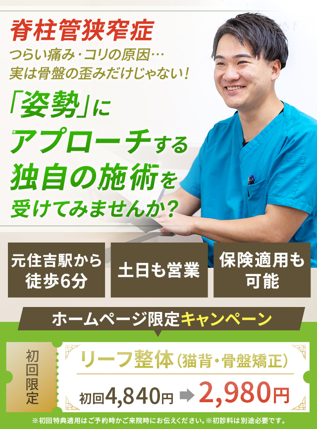 脊柱管狭窄症の痛みやシビレでお困りの方は、お気軽にご相談ください!